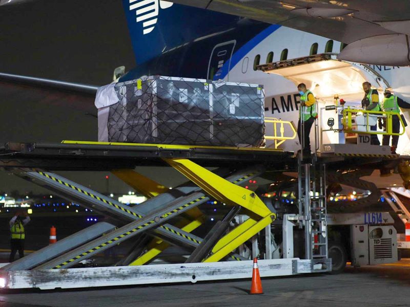 Este embarque es la primera entrega de un total de 51.5 millones de dosis contratadas al mecanismo multilateral Covax, para inmunizar a 25.75 millones de personas.