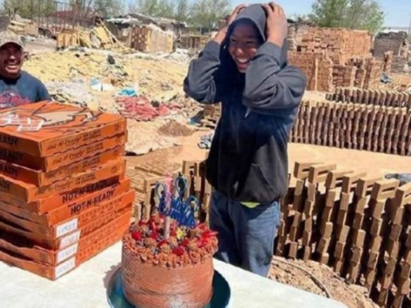Este chico tenía un deseo para celebrar sus 14 años: pizza, refresco y pastel.
