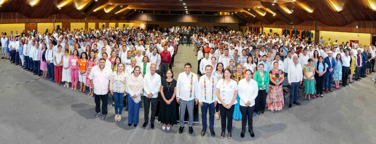 Ante cientos de presidentas y presidentes municipales e integrantes del gabinete legal y ampliado que acudieron a conocer la hoja de ruta del Gobierno de Oaxaca, el titular del Poder Ejecutivo Salomón Jara Cruz presentó el Plan Estatal de Desarrollo (PED) 2022-2028, y firmó el acuerdo administrativo de la aprobación del documento.