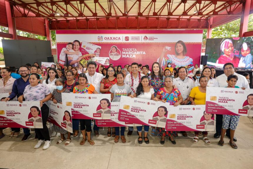 Agregó que a través de la Tarjeta Margarita Maza las jefas de familia de 18 a 64 años con hijas e hijos, que se encuentran separadas, viudas o solteras, y son el sostén de sus hogares, podrán contar con un ingreso bimestral de 2 mil pesos para adquirir la canasta básica alimentaria y con ello superar la pobreza extrema.