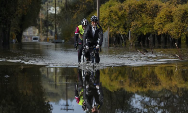 En California, donde una persona fue encontrada sin vida dentro de un vehículo sumergido por las inundaciones el sábado, las autoridades se preparaban para más precipitaciones mientras aún lidian con anegaciones y pequeños deslizamientos de tierra ocasionados por una tormenta anterior.